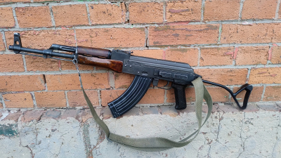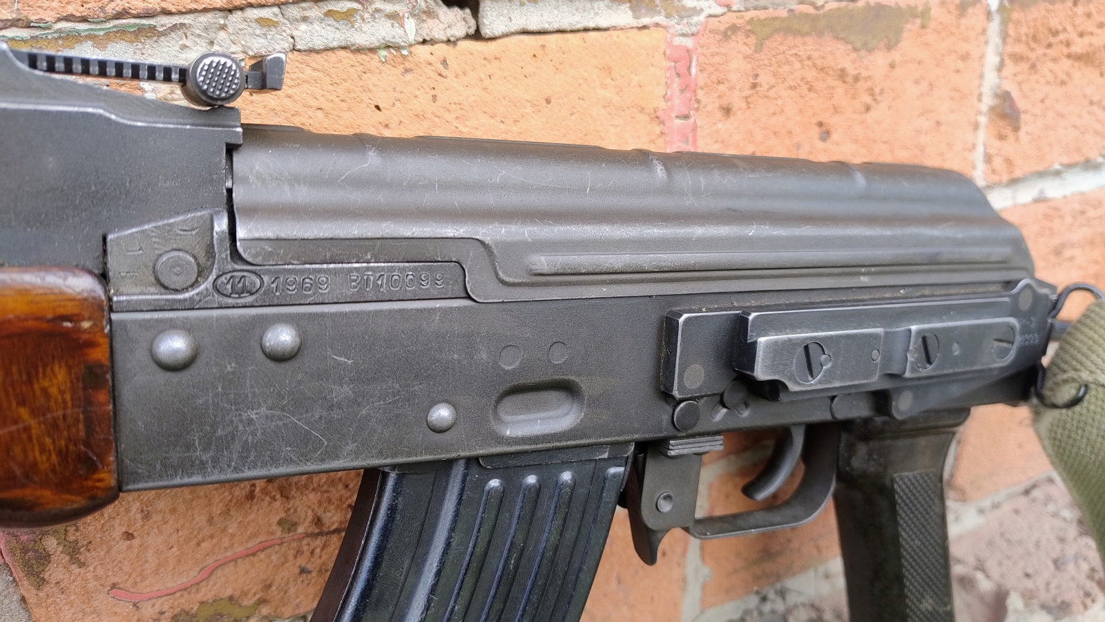 Oryginalny karabinek AKMŁ produkcji FB Radom z okresu PRLu. Spadek po agencji ochrony. Ktoś wpadł na pomysł żeby założyć im kolby od Tantali - to nie my. Wszystkie oryginalne oznaczenia na swoim miejscu, brak dobić. BRAK PL AMW!... Lufa w stanie 3/10, chrom obecny jednak z widocznymi ubytkami. Lufa była także już koronowana. Ale - gwint i chrom są nadal obecne. Ostatnia sztuka jaką mamy. Karabinek w pełni zgodny numerycznie oprócz kurka. Rura gazowa nienumerowana. Reszta fabrycznie zgodna.