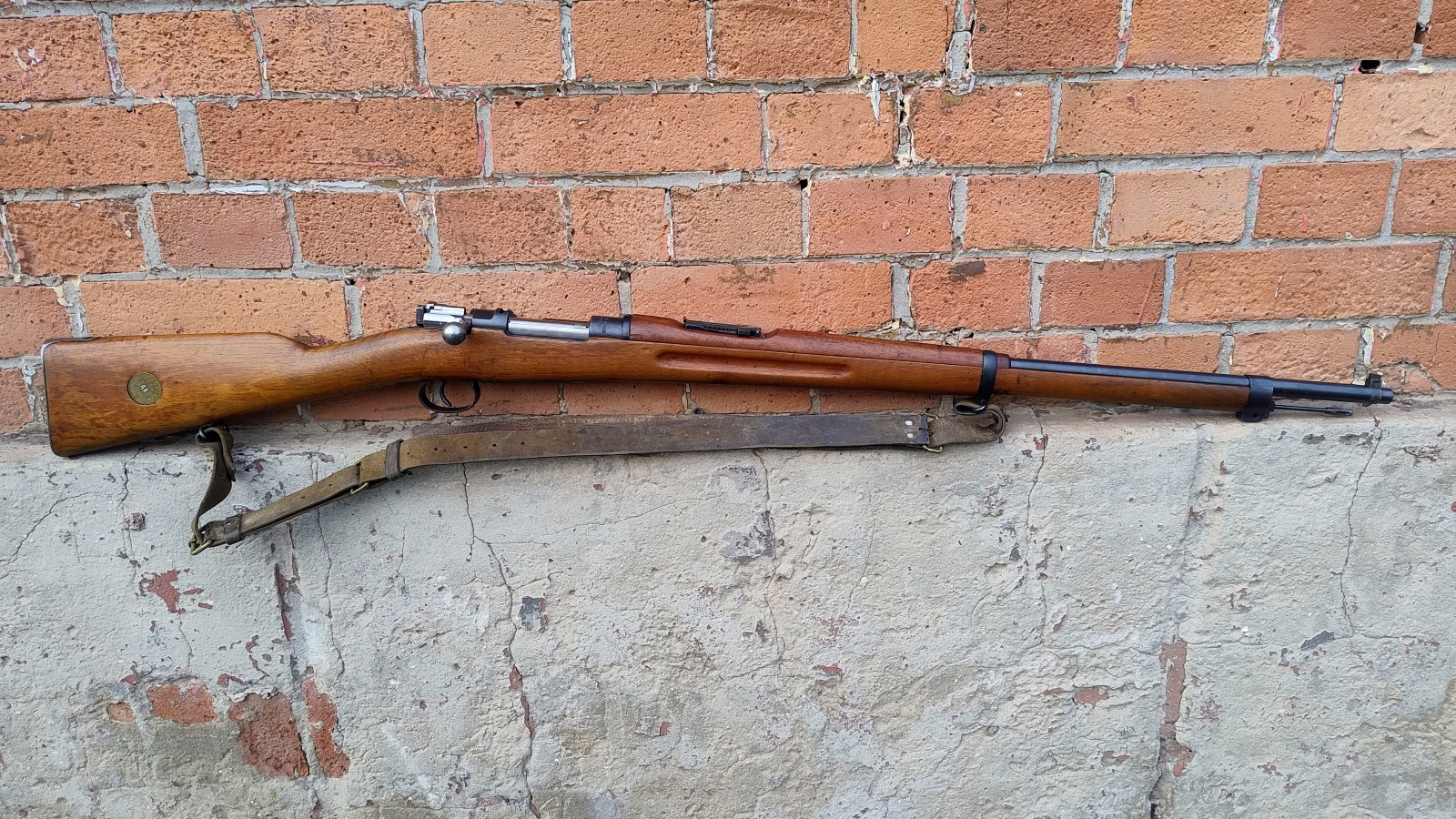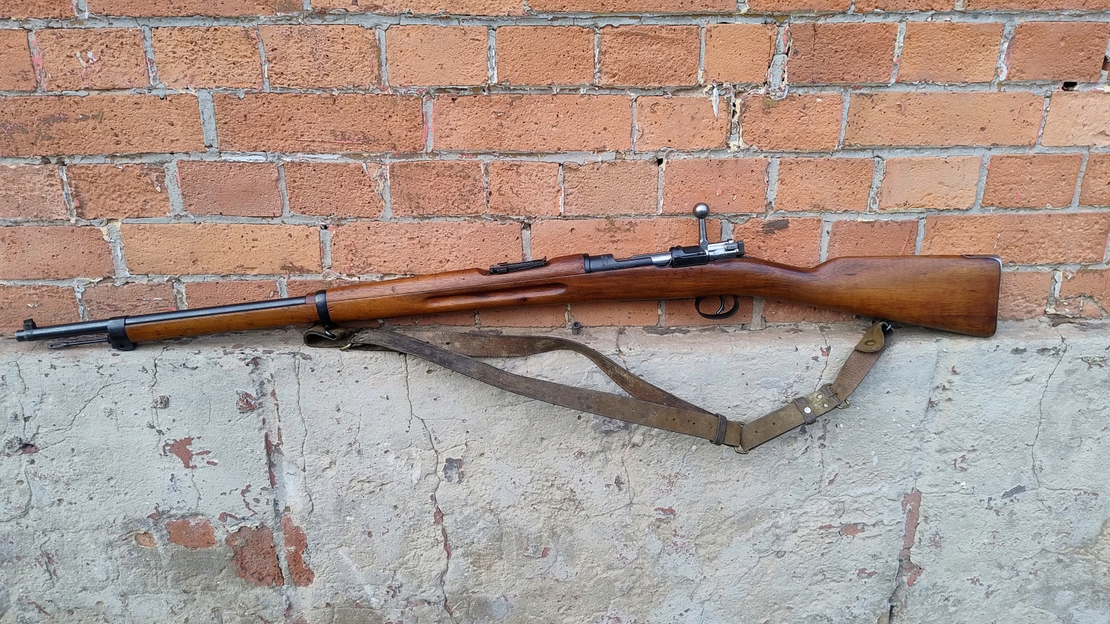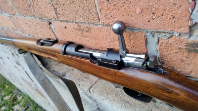 Podstawowy karabin armii szwedzkiej z przełomu XIX/XXw. Szwecja zamówiła w zakładach Mausera w Oberndorfie karabiny Mauser M96 w kalibrze 6,5x55mm. Początkowo były one produkowane w Niemczech (fabryka w Szwecji nie była jeszcze gotowa do podjęcia produkcji we własnym zakresie), a później już na terenie Szwecji z licencją. Pierwsza partia liczyła 12.000 sztuk numerowanych od 1 do 12.000 i była produkowana w latach 1899-1900. Prezentowany karabin ma numer seryjny 123568 i jest już produkcji szwedzkiej. Broń trafiła na uzbrojenie szwedzkiej armii - widoczne odbiory szwedzkie w postaci koron. Broń zgodna numerycznie oprócz bączków kolby, zatrzasku zamka i denka magazynka. Broń w świetnym stanie technicznym. Lufa bdb. W komplecie pas nośny. Perełka do każdej kolekcji broni długiej!