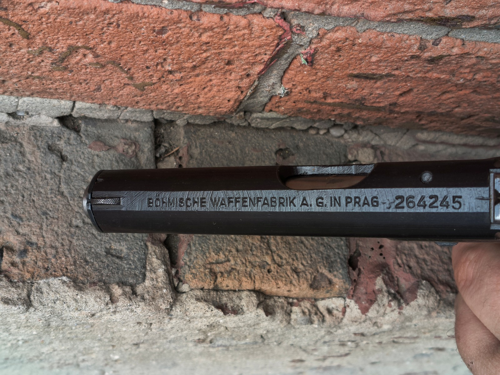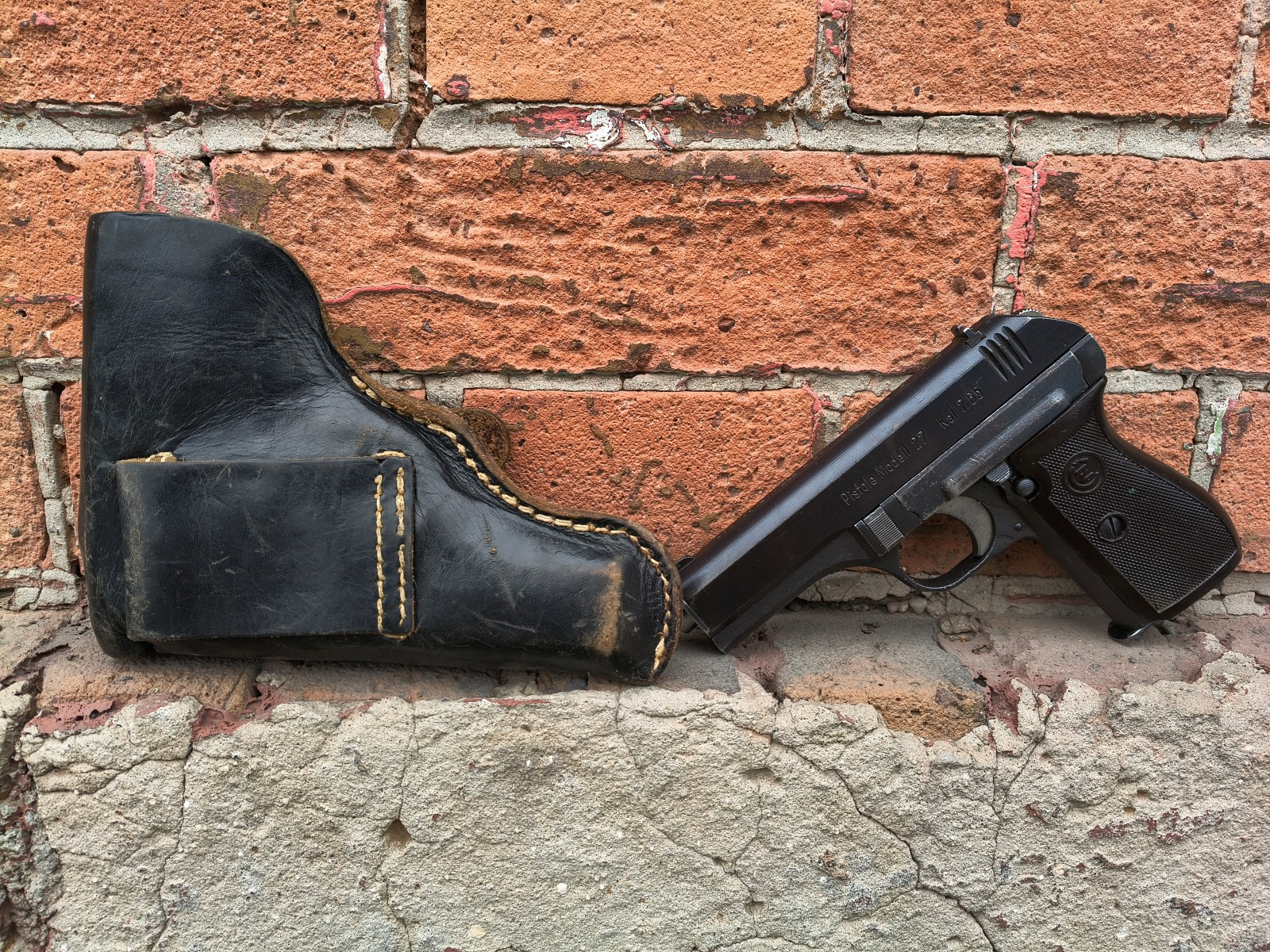 Czeski pistolet samopowtarzalny produkowany dla III Rzeszy w okupowanych zakładach w Pradze. Broń wyprodukowano gdzieś na przełomie roku 1942 i 1943. Obecne niemieckie stemple odbioru Waa76 na szkielecie, zamku i lufie. Broń przeszła na pewno przez jakiś remont/naprawę. Oksyda jest odnowiona, a na szkielecie są ślady po usuniętej powierzchownej korozji. Numer właściwy na zamku. Na szkielecie i lufie poza odbiorami Waa innych oznaczeń brak. W komplecie 2 magazynki oznaczone P. Mod. 27 czyli prawidłowo oraz kabura, która prawdopodobnie jest oryginalna II wojenna. Stan techniczny bdb, lufa bdb.