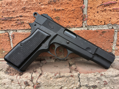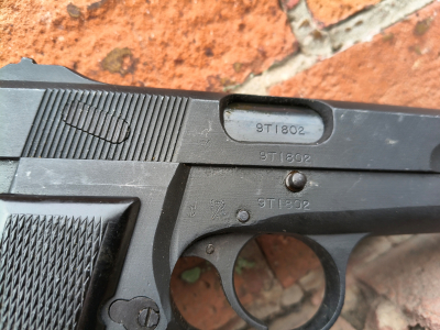 Przed Państwem fajny rodzynek czyli oryginalny pistolet FN High Power wyprodukowany w Kanadzie w 1945 roku na potrzeby armii brytyjskiej. W skrócie wyglądało to tak. Pierwowzór pistoletu HP został zaprojektowany dla armii francuskiej przez Browninga, a później kontynuowany i zmodyfikowany przez Dieudonne Saive. Finalna wersja została zatem faktycznie opracowana przez Saive'a jednak ze względów marketingowych nazwano go Browningiem. Ostatecznie Francja wydymała Belgów i tak zmieniła konkurs, że pistolet już nie spełniał wymogów. Podobnie Belgów wydymała II RP, gdyż początkowo to właśnie HP miał zostać etatowym pistoletem WP jednak także unieważniono konkurs ze względy na prace nad Visem. Ostatecznie Belgowie zostali wydymani przez wszytkich, a sam pistolet zamówili przed II wojną w niewielkich ilościach Chińczycy, Peru oraz trochę sztuk trafiło do armii belgijskiej. Broń została szerzej rozprowadzona po świecie w wyniku zajęcia fabryki FN przez Niemców w 1940 roku oraz natychmiastowym przyjęciem go na uzbrojenie Wehrmachtu pod nazwą pistole 640(b). Podczas okupacji wyprodukowano około 319 tysięcy Browningów HP. (Niezła pormocja nie?) Konstruktor tej zawbawki czyli Saive uciekł do Anglii gdzie pracował w zakładach Enfielda, a później do Kanady gdzie w zakładach John Inglis rozpoczęto produkcję. Tam produkowano od 1944r HP-ki znowu dla Chińczyków w nadziei, że będą strzelać z nich do Japończyków. Ostatecznie po 20 tys. sztuk Chińczycy zawiedli w tych planach i produkcję skierowano na potrzeby armii brytyjskiej i produkowano je w latach 1944-1945. I to jest właśnie egzemplarz produkcji dla wojsk brytyjskich z samego końca II wojny światowej. Zajebiście ciekawa historia nie? :) Broń w stanie bdb, w oryginalnej oksydzie oraz zgodna numerycznie. Lufa lustro. Magazynek jest ciekawy bo denko sygnowane JI, a pudełko JR i waffenamt. Waffenamtów na nim nie powinno być zatem magazynek chyba dołożony albo coś kombinowany. PIĘKNA PEREŁKA DO DOBREJ KOLEKCJI!