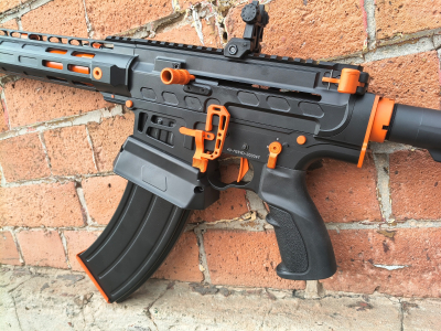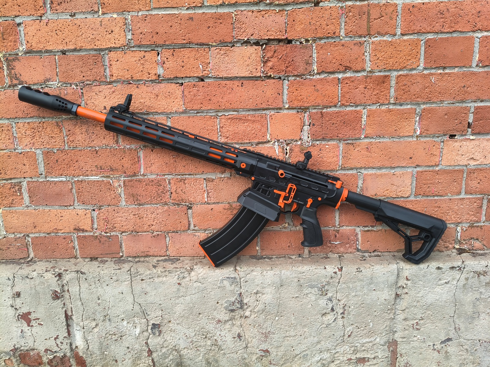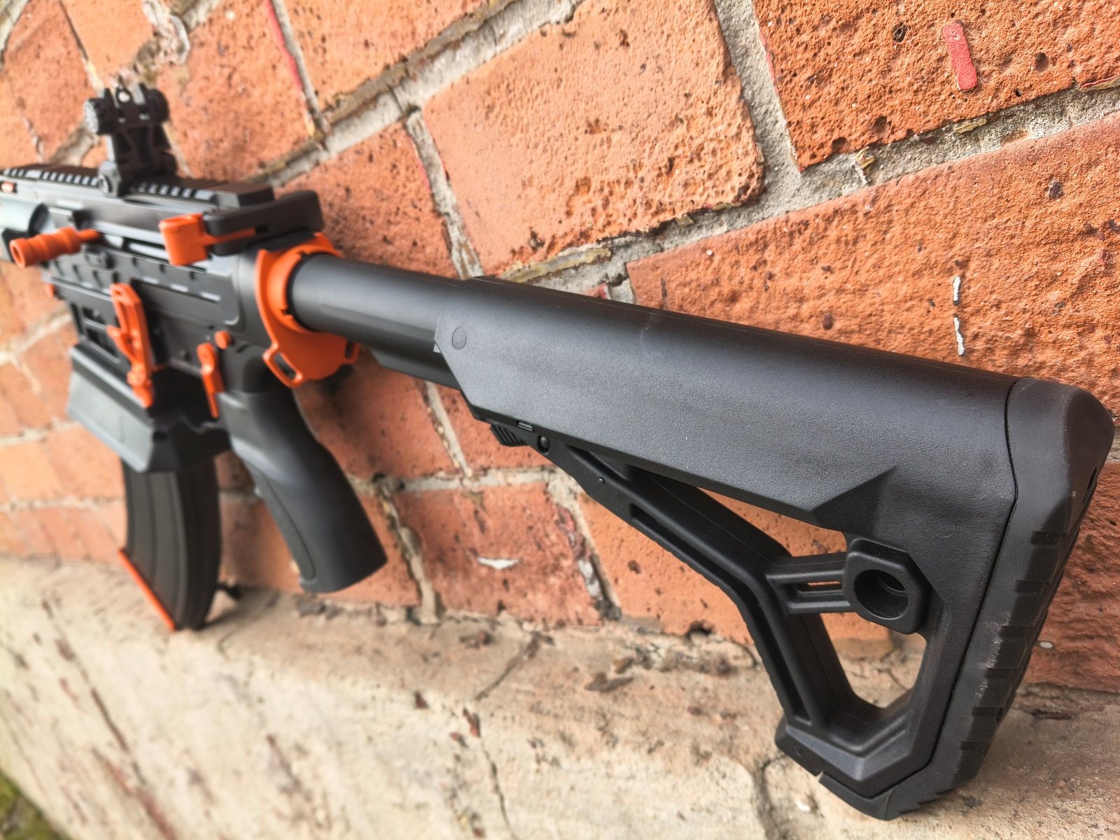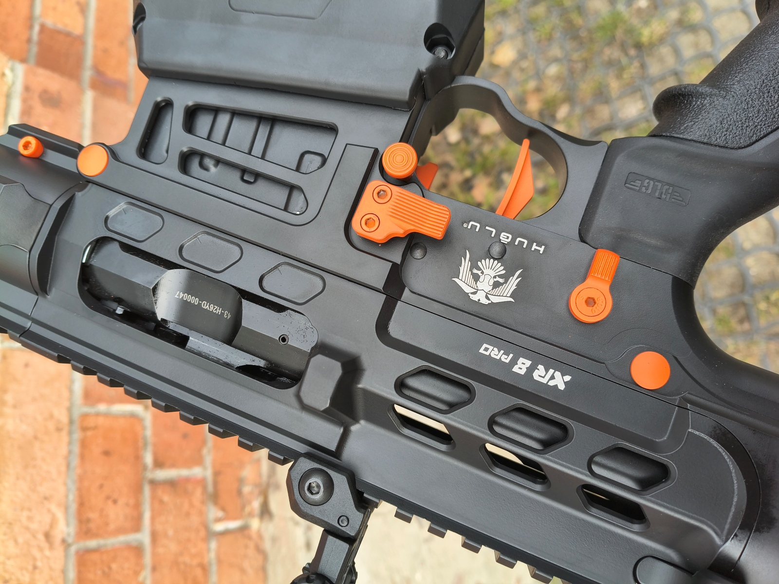 Producent zadbał o ergonomię i szybką personalizację: teleskopowa kolba z mil-spec buffer tube, miękki chwyt pistoletowy, obustronna dźwignia bezpieczeństwa i podwójne przyciski zwalniania magazynka/zwalniania zamka umożliwiają intuicyjną obsługę przez strzelca prawo i leworęcznego. Modularne, przednie łoże z szyną montażową umożliwia montaż akcesoriów (bipod, latarka, laser), a mobilny klucz ze złączką ułatwia serwis i zmianę czoków w terenie. XR8 Pro jest także łatwa do rozłożenia i konserwacji — zaprojektowana z myślą o szybkim serwisie polowym.