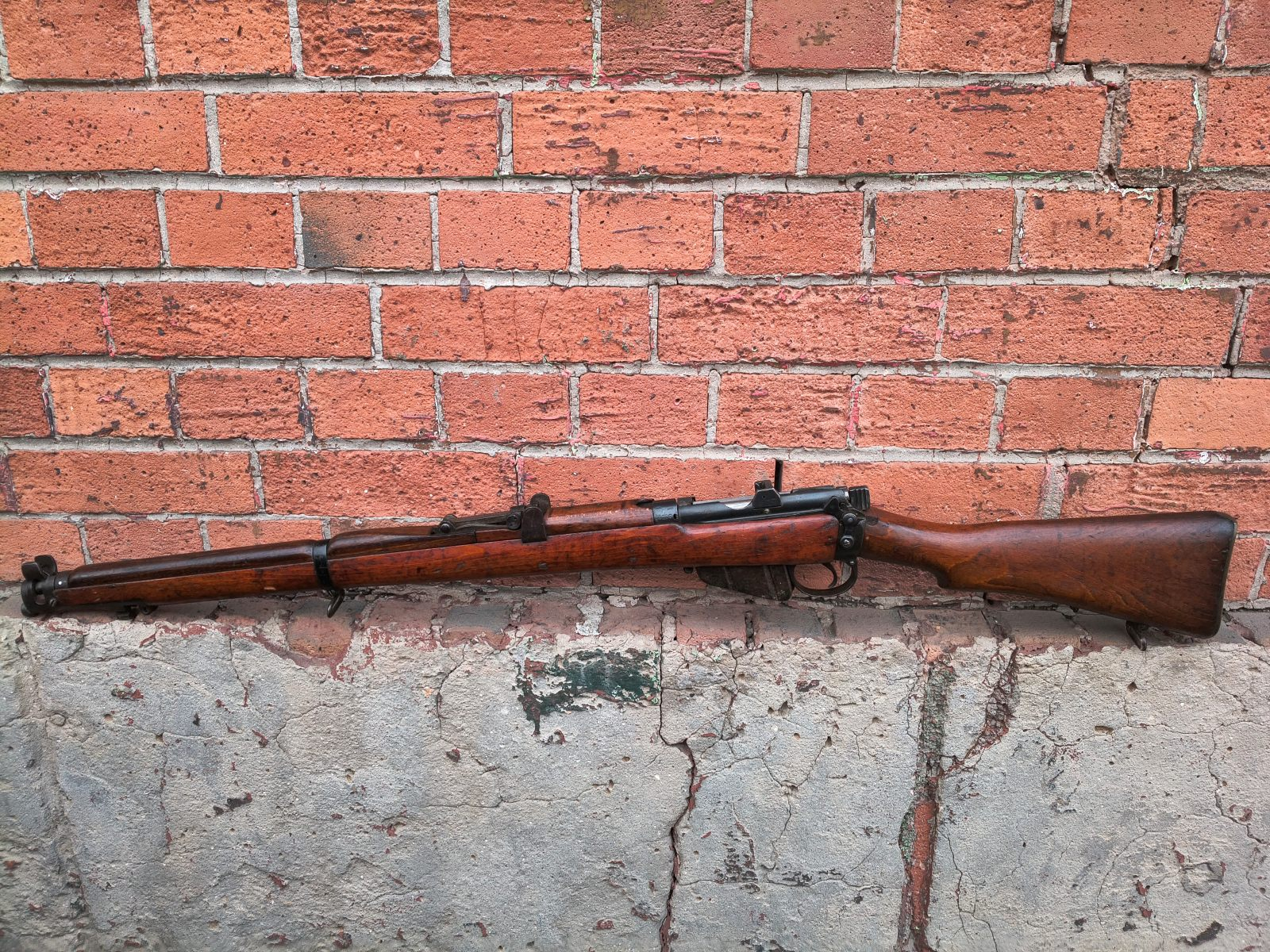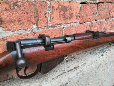 Legenda obu wojen światowych czyli brytyjski karabin powtarzalny Lee Enfield SHTLE kal. 303 British. Prezentowany egzemplarz to produkcja z 1942 roku. Broń zgodna numerycznie (orpocz osady bagnetu z muszką oraz ramienai szczerbinki) w stanie bdb. Przewód lufy bardzo ładny, gwint wyraźny i ostry. Obowiązkowa pozycja w każdej kolekcji broni długiej!
