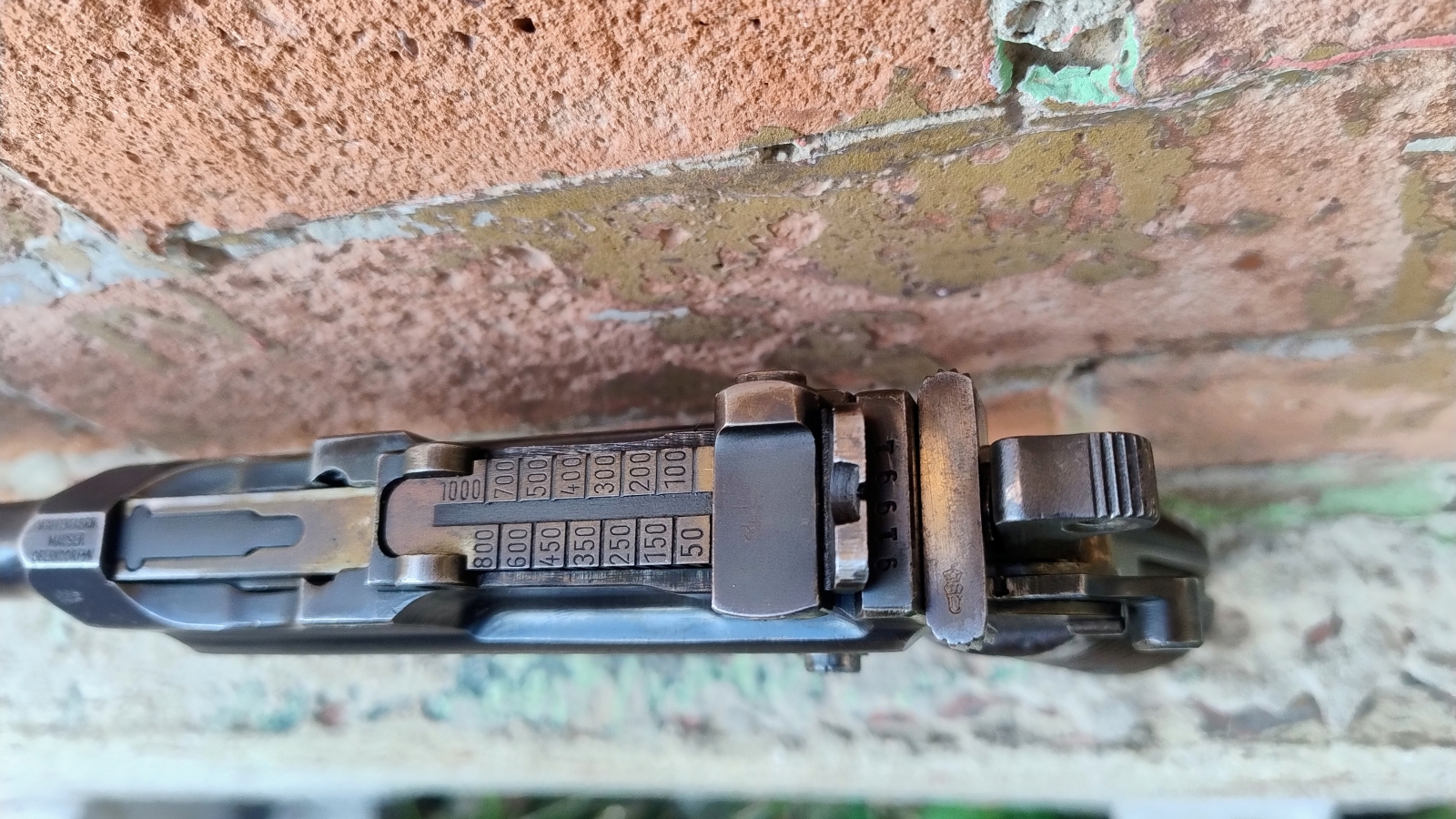 Samoczynna odmiana Mausera C96 czyli Mauser M712 Schnellfeuer był produkowany w latach 30-stych. Broń trafiła zarówno na eksport jak i na rynek wewnętrzny (np do SS czyli elektryków). Od zwykłego C96 broń odróżnia się odpinanym magazynkiem pudełkowym o pojemności 20 naboi oraz selektorem ognia z boku z pozycjami N - Normalfeuer oraz R - Reihenfeuer. Prezentowana sztuka to produkcja z końca 1933 początku 1934 roku i jest fabrycznie zgodna numerycznie (numerowany zamek i szkielet). Oksyda wygląda także na oryginalną. Broń sygnowana standardowym odbiorem Mausera czyli U w koronie z lewej strony komory nabojowej. Na denku magazynka standardowa beczka mausera. Broń już przerobiona na tryb samopowtarzalny. Stan techniczny bdb. Lufa bardzo ładna, gwint wyraźny, ostry i błyszczący. Miejscami drobne skazy. Piękna perełka do dobrej kolekcji!
