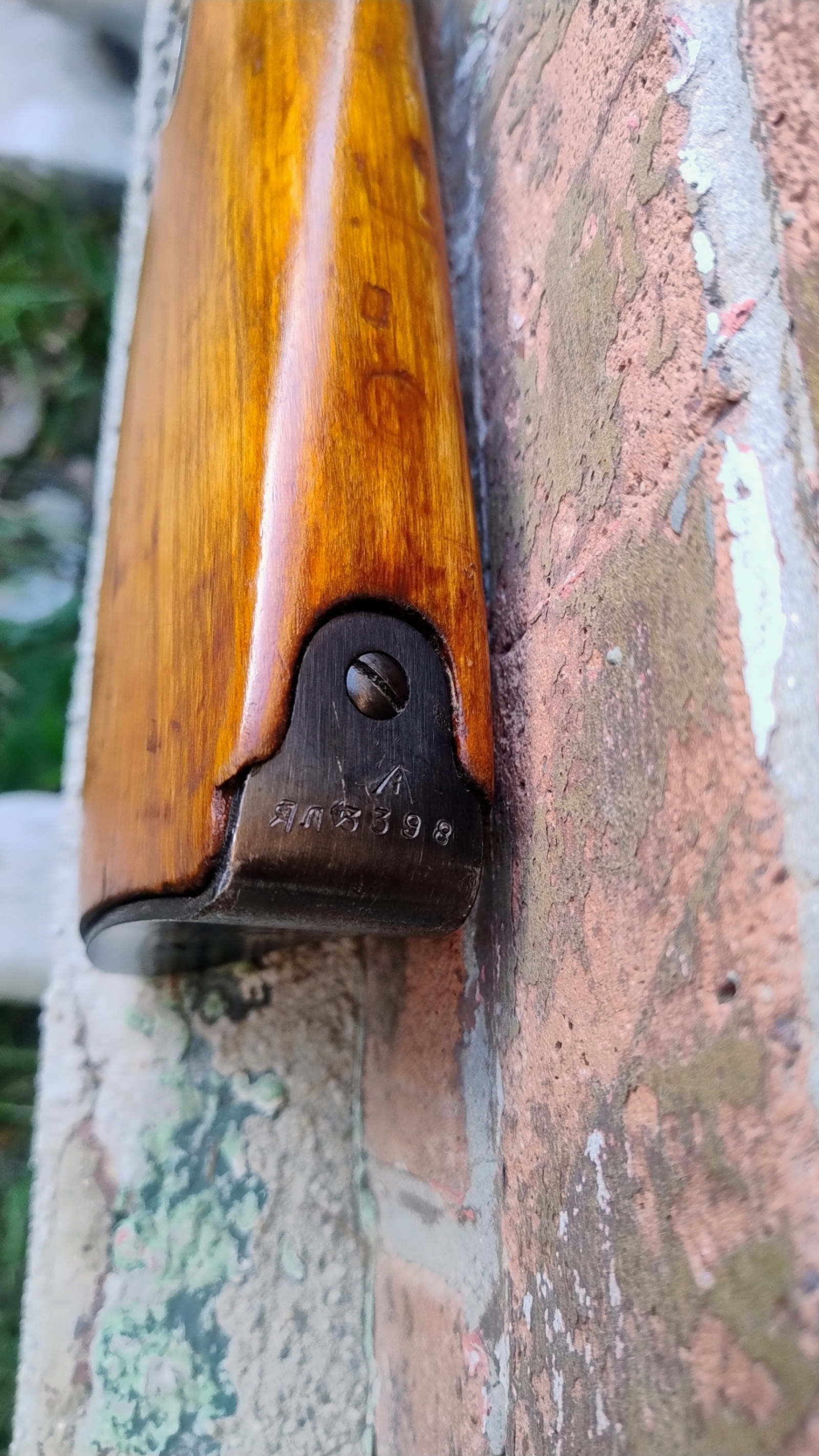 Ostatnia wersja rozwojowa karabinu Mosina 1891/30 wprowadzona w 1944r czyli model 44. Wersja skrócona, ze składanym bagnetem na zawiasie. Broń produkcji sowieckiej powojennej. Stan techniczny bdb, lufa bdb. Całość zgodna numerycznie oprócz zamka (był dozgadniany) i denka magazynka (inny numer).