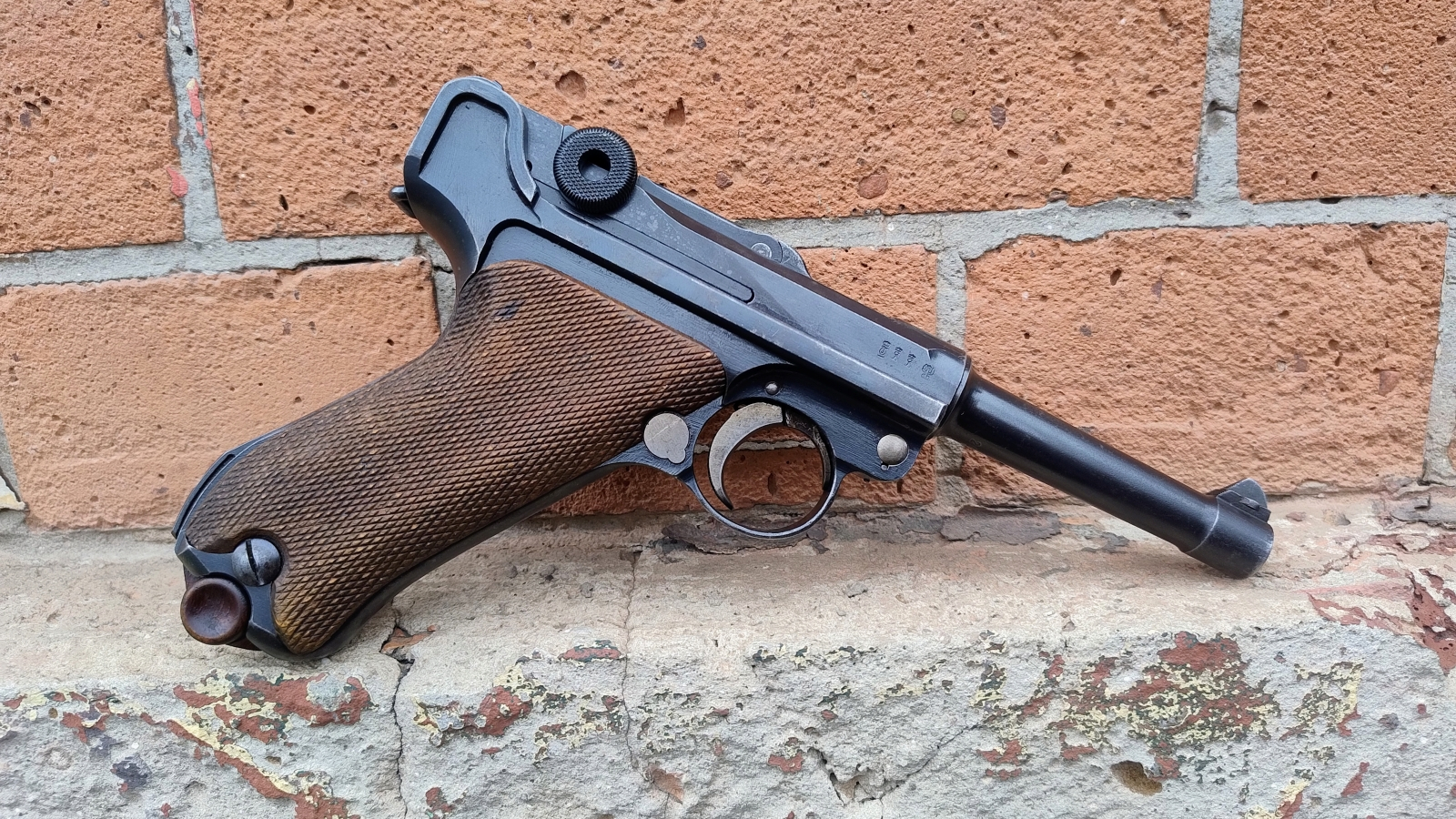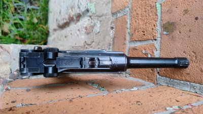 Jeden z najbardziej rozpoznawalnych i pożądanych pistoletów w świecie kolekcjonerów! Pistolet P08 Parabellum konstrukcji Georga Lugera był podstawową bronią krótką w armii niemieckiej przez kilkadziesiąt lat. Konstrukcja używana podczas I i II wojny światowej. Szczególnie ceniony i poszukiwany jako trofeum przez żołnierzy alianckich walczących na zachodnim froncie II wojny światowej. Prezentowany egzemplarz to produkcja fabryki DWM ze schyłku I wojny światowej. Broń posiada wszystkie odbiory wojskowe. Broń w pełni zgodna numerycznie (oprócz magazynka który jest nienumerowany). Magazynek ze stopką drewnianą czyli właściwy dla I wojny światowej. Pistolet używany, strzelany. Oksyda prawdopodobnie oryginalna, ale miejscami poprawiana. Stan wizualny taki jak widać na fotkach - super. Lufa w stanie dobrym dobrym - gwint wyraźny, ale matowy z kaszą. Okładziny także oryginalne. Technicznie wszystko ok. Piękna ozdoba każdej kolekcji!