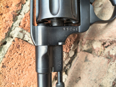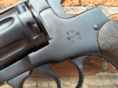 Jeden z najbardziej poszukiwanych rewolwerów w polskim środowisku kolekcjonerskim! Przed Wami licencyjna produkcja belgijskiej konstrukcji naganta czyli polski Ng30 produkowany w F.B.Radom w okresie międzywojennym! Do wybuchu II wojny światowej w 1939r zdążono wyprodukować tylko 19.000 egzemplarzy które trafiły w zdecydowanej większości właśnie do Policji z okresu II RP, ale także do innych umundurowanych formacji np straży pocztowej. Prezentowany egzemplarz pochodzi z 1936 roku i ma numer 18259P. Broń JEST FABRYCZNIE ZGODNA NUMERYCZNIE - numer na szkielecie, bębnie, stempelku i zatrzasku. Obecne odbiory D2 w owalu itp. Powłoka nowa, ale wykonana bardzo fachowo. Technicznie bron w stanie bdb. Lufa w stanie dobrym - gwint wyraźny, ostry ale pokryty kaszą na całej długości. Wspaniała, zgodna numerycznie perełka do dobrej kolekcji!!!