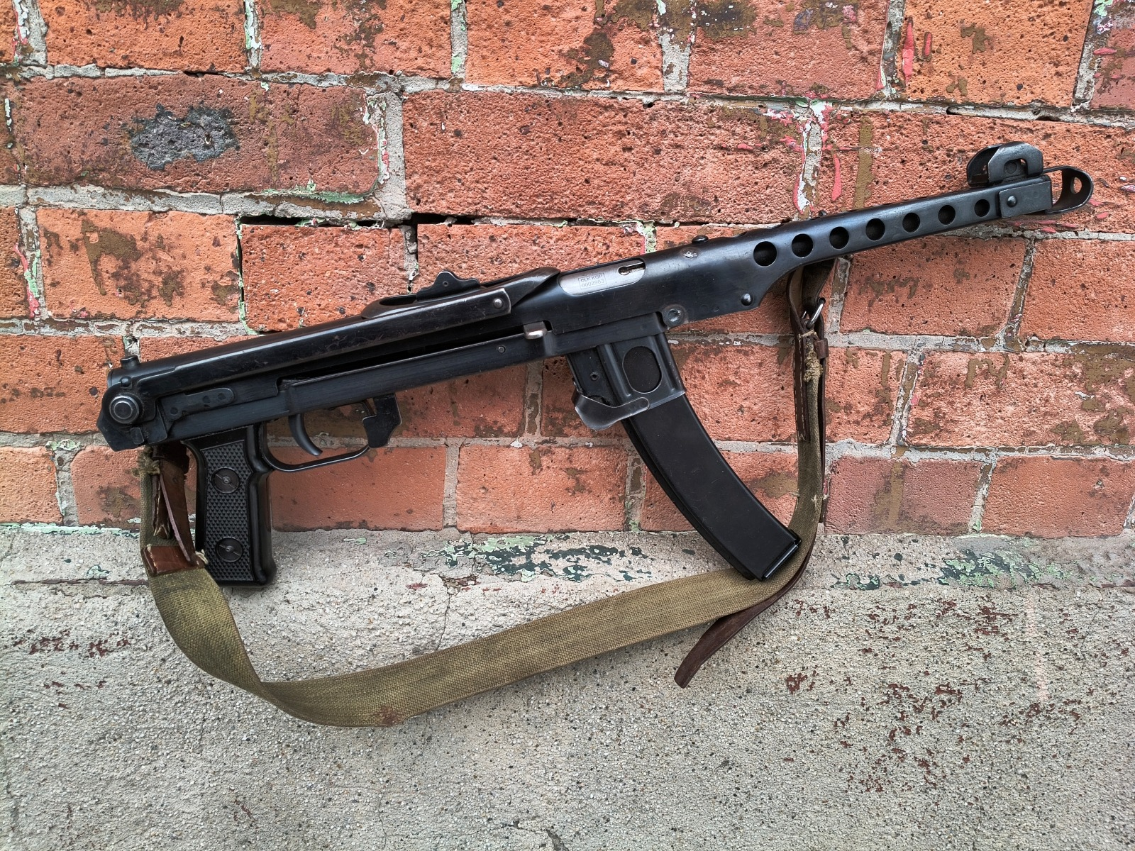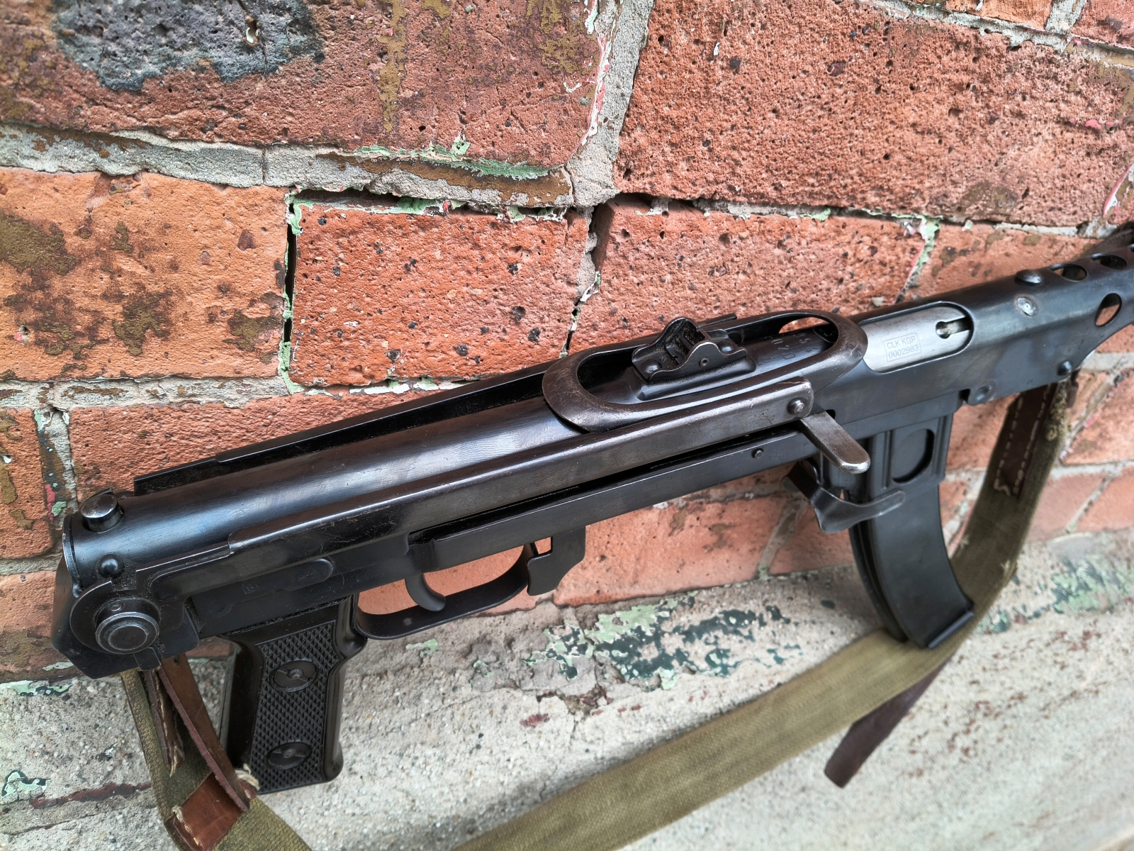Pistolet maszynowy PPS wz.43 prrodukcji polskiej powojennej. W komplecie pas nośny, ładownica II wojenna oraz 3 magazynki. Broń pozbawiona cech użytkowych na zasadach sprzed 2016r, wszystko ruchome i rozbieralne. Można oddać suchy strzał. SPRZEDAŻ KAŻDEJ OSOBIE PEŁNOLETNIEJ ZA OKAZANIEM DOWODU OSOBISTEGO, NIE JEST WYMAGANE POZWOLENIE NA BROŃ.