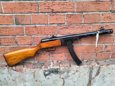 Nic tak nie cieszy jak seria z pepeszy! Pistolet pulemiot szpagina obr. 41, czyli w skrócie PPSz wz. 41 stanowi nieodłączny element stereotypowego krasnoarmiejca z okresu drugiej wojny światowej. Pistolet maszynowy zasilany silną amunicją 7,62x25mm o prostej konstrukcji bardzo dobrze znosił ciężkie warunki atmosferyczne, brud i wstawionego żołnierza. Często jednak wojenna jakość wykonania odbiegała od ogólnych norm i nierzadko można spotkać pepesze z krzywo zamontowanymi szczerbinkami czy odpadającymi osłonami muszki. Tak czy siak pepesza pozostaje niekwestionowaną ikoną broni palnej i jest obowiązkową pozycją w każdej kolekcji.. Broń w większości powierzchnowym remoncie wojskowym (frontowym lub zaraz powojennym przez wysłaniem broni do bułgarii) w ZSRR. Lufy bdb. Broń zasmarowana smarem magazynowym. Wszystko w pełni radzieckie i wojenne.