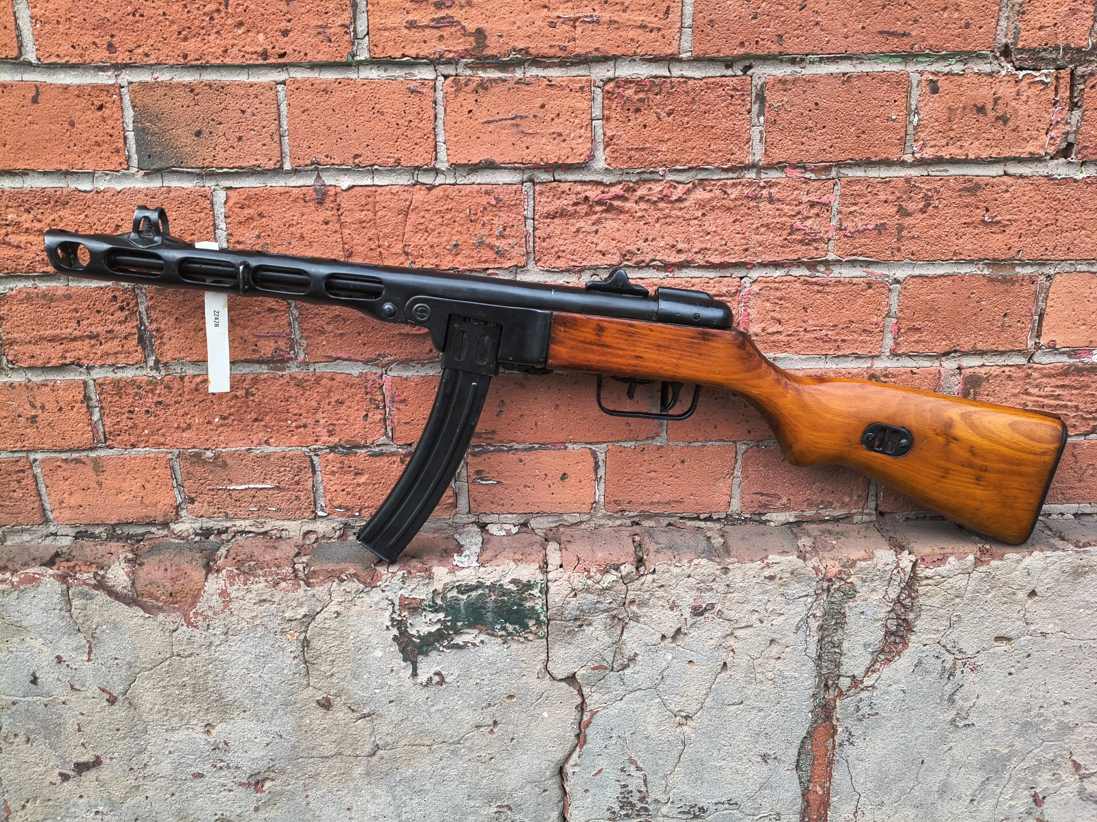 Nic tak nie cieszy jak seria z pepeszy! Pistolet pulemiot szpagina obr. 41, czyli w skrócie PPSz wz. 41 stanowi nieodłączny element stereotypowego krasnoarmiejca z okresu drugiej wojny światowej. Pistolet maszynowy zasilany silną amunicją 7,62x25mm o prostej konstrukcji bardzo dobrze znosił ciężkie warunki atmosferyczne, brud i wstawionego żołnierza. Często jednak wojenna jakość wykonania odbiegała od ogólnych norm i nierzadko można spotkać pepesze z krzywo zamontowanymi szczerbinkami czy odpadającymi osłonami muszki. Tak czy siak pepesza pozostaje niekwestionowaną ikoną broni palnej i jest obowiązkową pozycją w każdej kolekcji. Na sprzedaż sztuka wyprodukowana w 1943 roku w Zakładach Narzędziowych w Tibilisi - jest to jedna z najrzadszych produkcji pepesz jakie zachowały się do dnia dzisiejszego. Broń w w pełni zgodna numerycznie oprócz układu spustowego - ten był dozgodniony z innej sztuki, prawdopodobnie jeszcze podczas wojny. Kolba nosi ślady naprawy - także prawdopodobnie jeszcze w arsenałach podczas wojny. Po wojnie przekazana do Bułgarii - stąd numer seryjny zgodny z bronią ale nabity w poprzek kolby. Oryginalny numer prawdopodobnie zeszlifowano w czasie naprawy kolby.