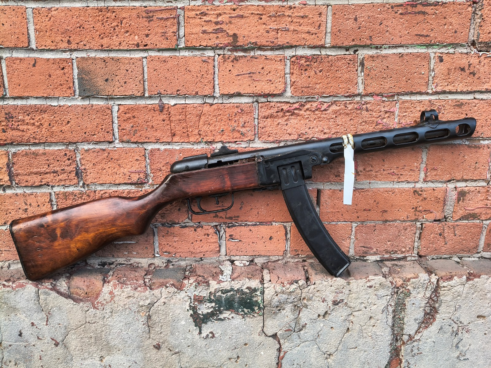 Nic tak nie cieszy jak seria z pepeszy! Pistolet pulemiot szpagina obr. 41, czyli w skrócie PPSz wz. 41 stanowi nieodłączny element stereotypowego krasnoarmiejca z okresu drugiej wojny światowej. Pistolet maszynowy zasilany silną amunicją 7,62x25mm o prostej konstrukcji bardzo dobrze znosił ciężkie warunki atmosferyczne, brud i wstawionego żołnierza. Często jednak wojenna jakość wykonania odbiegała od ogólnych norm i nierzadko można spotkać pepesze z krzywo zamontowanymi szczerbinkami czy odpadającymi osłonami muszki. Tak czy siak pepesza pozostaje niekwestionowaną ikoną broni palnej i jest obowiązkową pozycją w każdej kolekcji. Na sprzedaż sztuka wyprodukowana w 1945 r w zakłafach ZiS czyli Zavod Imieni Stalina w Moskwie. Od tej pory broń nieużywana, w pełni fabrycznie zgodna numerycznie, brak remontów i innych ingerencji. Jedyna rzecz powojenna to powtórzony ten sam numer na kolbie po drugiej stronie - spadek po przyjęciu do magazynów bułgarskich. Grata dla kolekcjonerów - nieremontowane pepesze są cholernie rzadkie na naszym rynku. Magazynki niezgodne numerycznie. W komplecie magazynek łukowy, bębnowy, pas nośny, wycior, oliwiarka, kluczyk. Do wyboru full auto albo semi bez zmiany ceny.