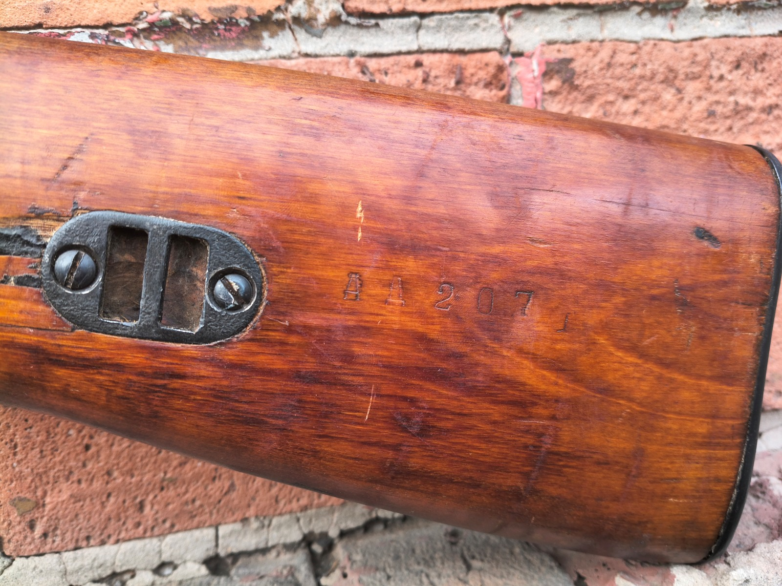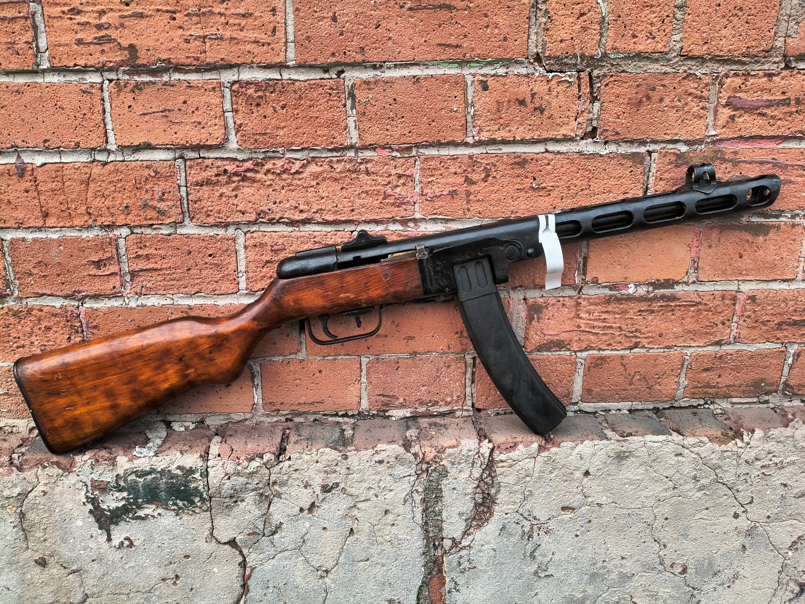 Nic tak nie cieszy jak seria z pepeszy! Pistolet pulemiot szpagina obr. 41, czyli w skrócie PPSz wz. 41 stanowi nieodłączny element stereotypowego krasnoarmiejca z okresu drugiej wojny światowej. Pistolet maszynowy zasilany silną amunicją 7,62x25mm o prostej konstrukcji bardzo dobrze znosił ciężkie warunki atmosferyczne, brud i wstawionego żołnierza. Często jednak wojenna jakość wykonania odbiegała od ogólnych norm i nierzadko można spotkać pepesze z krzywo zamontowanymi szczerbinkami czy odpadającymi osłonami muszki. Tak czy siak pepesza pozostaje niekwestionowaną ikoną broni palnej i jest obowiązkową pozycją w każdej kolekcji. Na sprzedaż sztuka wyprodukowana w 1945 r w zakłafach ZiS czyli Zavod Imieni Stalina w Moskwie. Od tej pory broń nieużywana, w pełni fabrycznie zgodna numerycznie, brak remontów i innych ingerencji. Jedyna rzecz powojenna to powtórzony ten sam numer na kolbie po drugiej stronie - spadek po przyjęciu do magazynów bułgarskich. Grata dla kolekcjonerów - nieremontowane pepesze są cholernie rzadkie na naszym rynku. Magazynki niezgodne numerycznie. W komplecie magazynek łukowy, bębnowy, pas nośny, wycior, oliwiarka, kluczyk. Do wyboru full auto albo semi bez zmiany ceny.