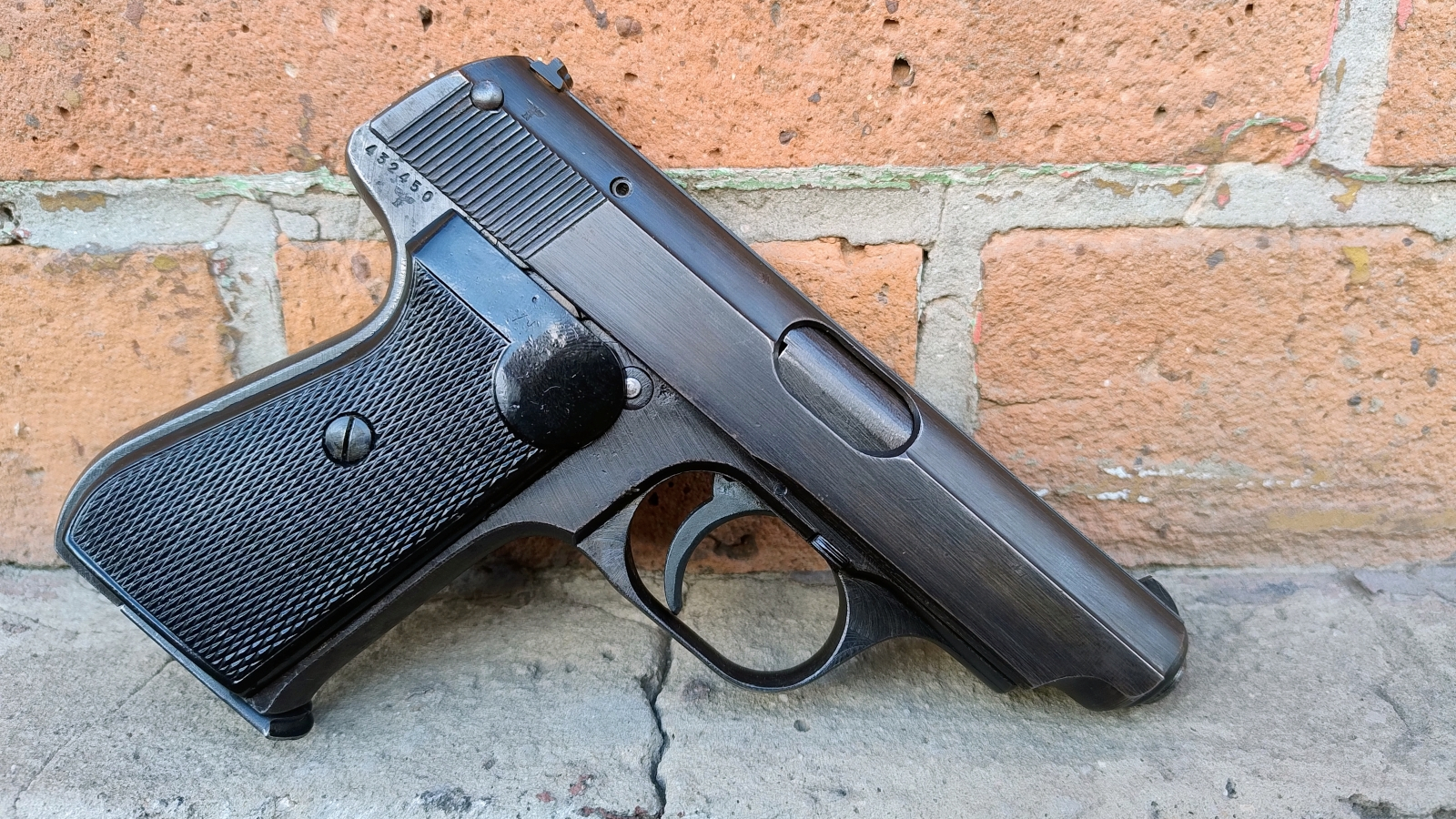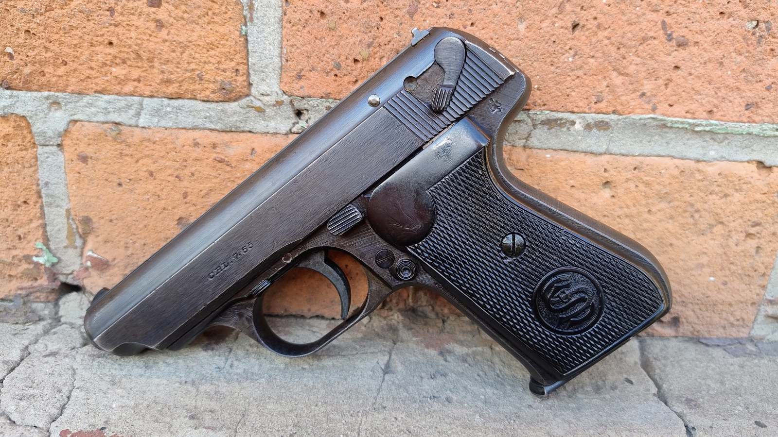 Niemiecki pistolet samopowtarzalny zasilany amunicją 7,65 Browning produkcji firmy Sauer&Sohne. Jedna z wielu konstrukcji zasilanych amunicją 7,65 Browning używane przez siły zbrojne III Rzeszy podczas drugiej wojny światowej. Prezentowany egzemplarz jest w pełni zgodny numerycznie, a ponadto posiada odbiór waffenamt świadczący o przyjęciu na stan sił zbrojnych. Stan techniczny bdb. Lufa bdb. W komplecie oryginalna kabura sygnowana DRGM oraz dodatkowy magazynek. Kabura z tyłu miała naprawiane uchu na pas.