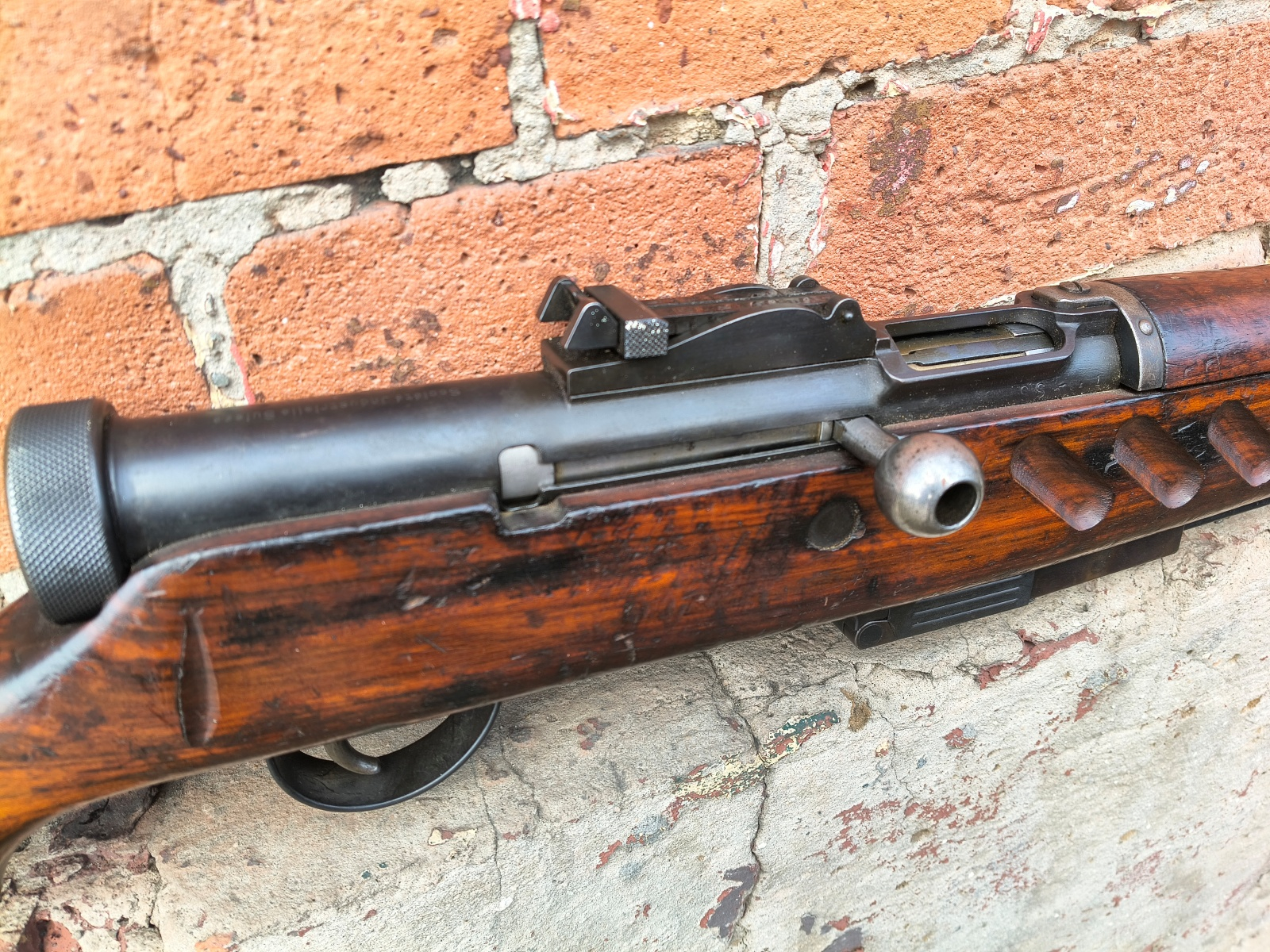 Produkcję zakończono prawdopodobnie na przełomie 1941/1942r kończąc na 1200 wyprodukowanych sztukach. Broń była używana w okresie II wojny światowej, ale raczej marginalnie. Prezentowany egzemplarz to właśnie jedna z 282 sztuk MKMS które trafiły w latach 1939-1940 do Finlandii gdzie naparzały do sowietów. Broń w pełni oryginalna i fabrycznie zgodna numerycznie łącznie z kolbą oprócz zamka (zamek dozgodniony) i magazynka. Stan techniczny" bdb, wszystko w pełni sprawne. Przewd lufy w stanie bdb z małym minusikiem bo na idelanym błyszczącym gwincie widać kilka drobnych skaz (zmatowień miejscowych). Bardzo rzadka rzecz której powstało około 1200 sztuk. Już dzisiaj może stać się ozdobą Twojej kolekcji!