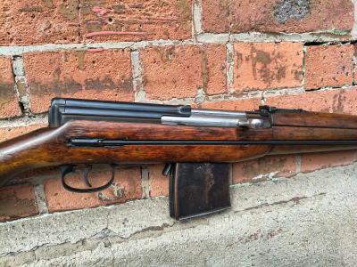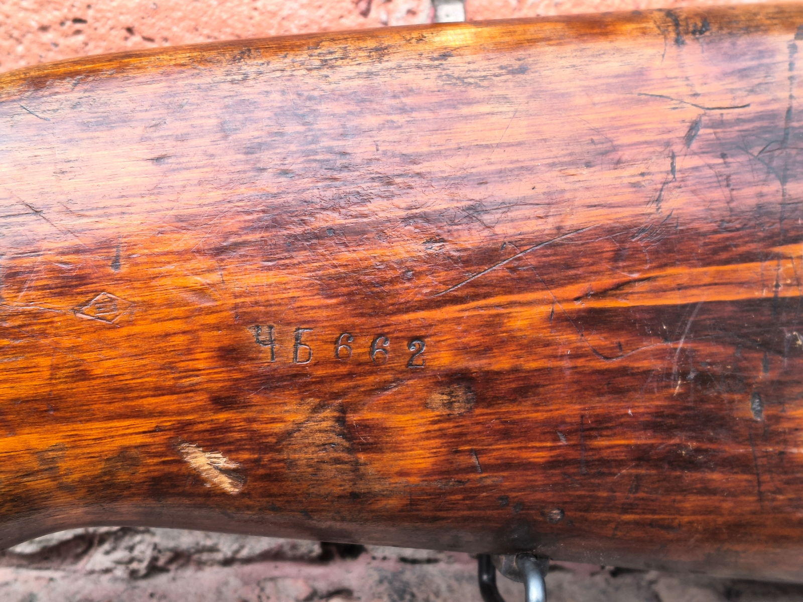 Na sprzedaż egzemplarz z 1939 roku w pięknym stanie. Karabin z oryginalną zgodną numerycznie i fabrycznie kolbą oraz lufą w przepięknym stanie! W tej beczce miodu jest łyżka dziegću, otóż zamek, suwadło, magazynek i układ spustowy są niezgodne numerycznie. Nawet pomimo tego minusika bron prezentuje się znakomicie i będzie ozdobą każdej porządnej kolekcji. Polecamy!!!
