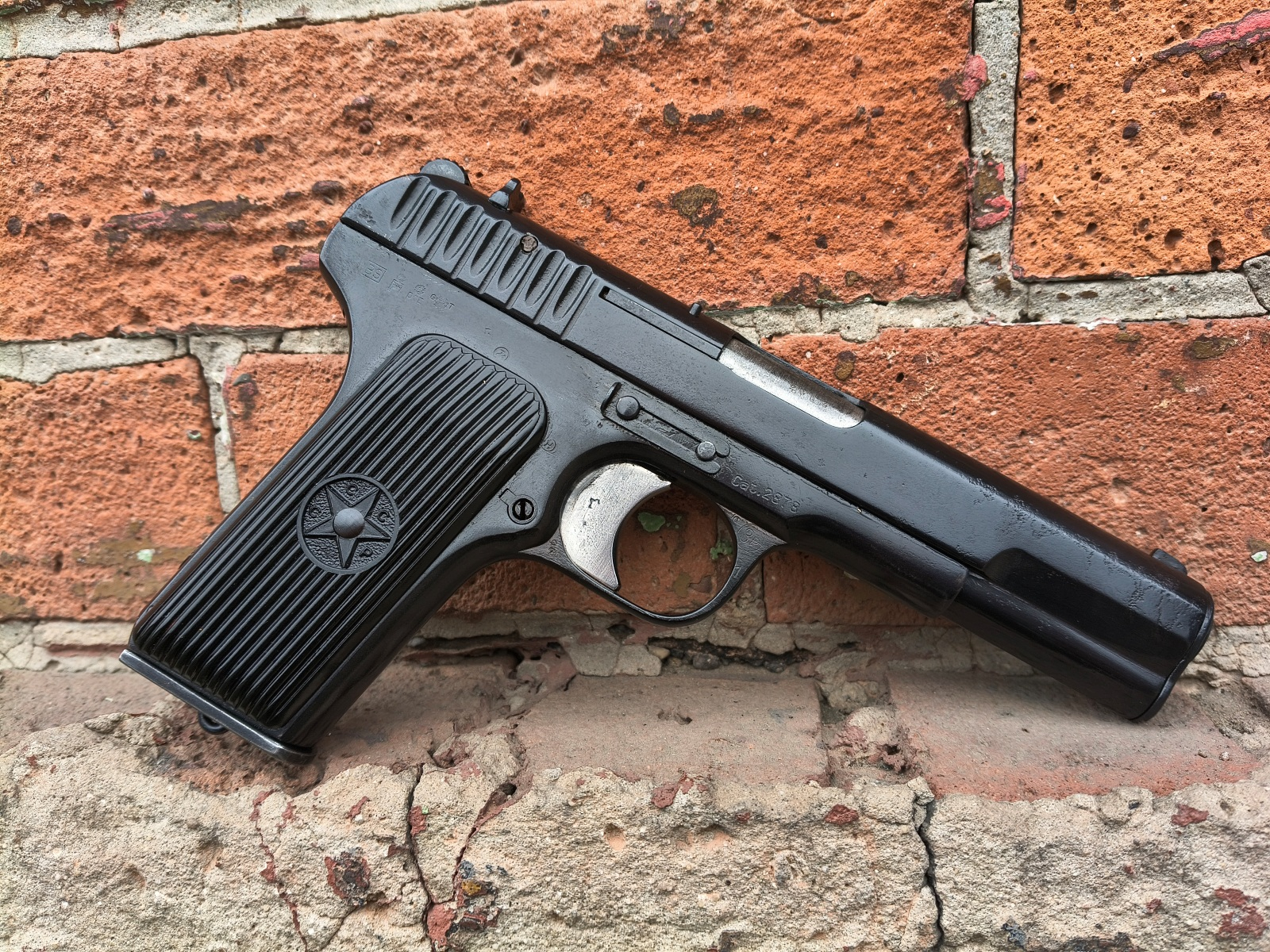 Pierwszym modelem tetetki wprowadzonym do produkcji seryjnej był model TT-30 który produkowano w Tule od 1931 do 1935r w dwóch odmianach (typ 1 i typ 2). W roku 1933 opracowano wersję ze zmodernizowanym finalnie układem spustowo-uderzeniowym i oznaczono ją jako TT-33 (czyli najpopularniejszy typowy model który wszyscy znamy) - jego produkcja ruszyła w 1935r. Tutaj mamy zatem pierwsze modele produkowane seryjnie przed modernizacją. Broń niezgodna numerycznie i przeoksydowana. Stan techniczny bdb, lufa w stanie dst+, gwint wyraźny, ostry ale zmatowiony i pokryty kaszką.