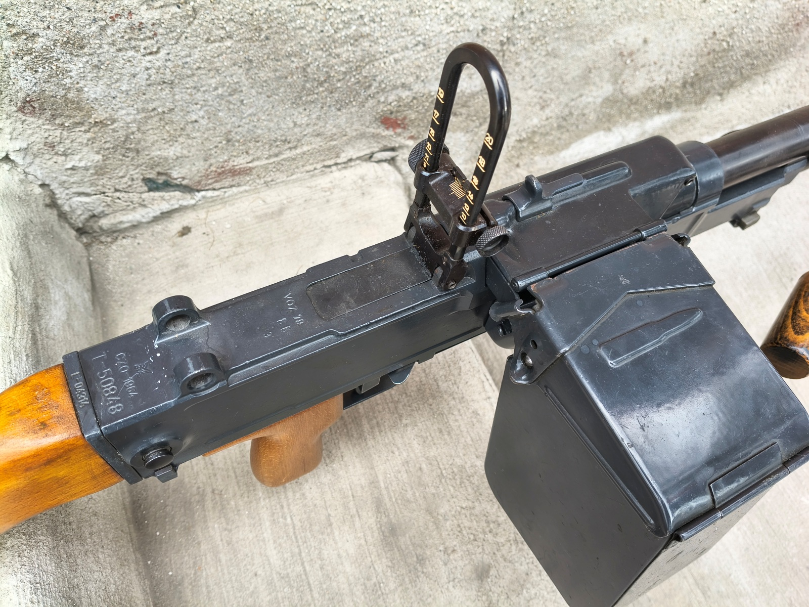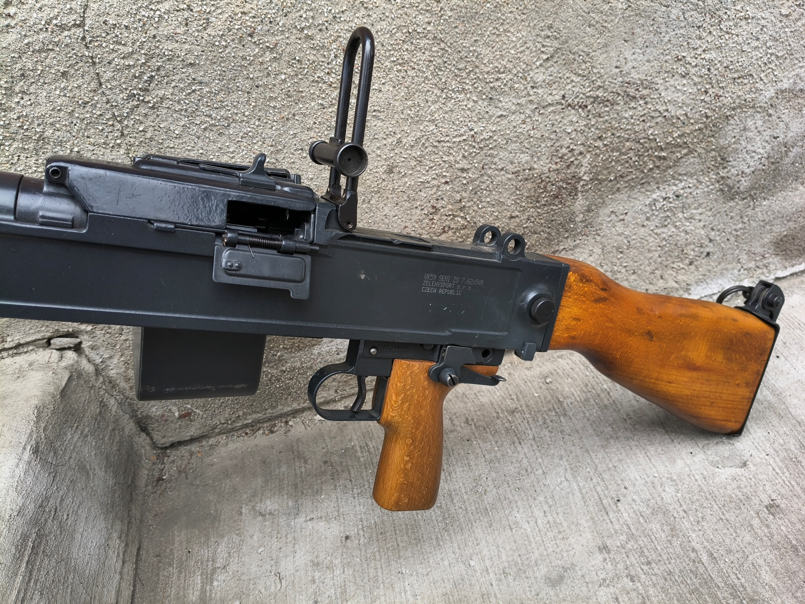 Czeski uniwersalny karabin maszynowy UK59. Karabin juz w semi-auto wraz z jedną małą skrzynką, Lufa w stanie db+, techniznie bdb. Ślady użytkowania w postaci rys na farbie. Polecamy!