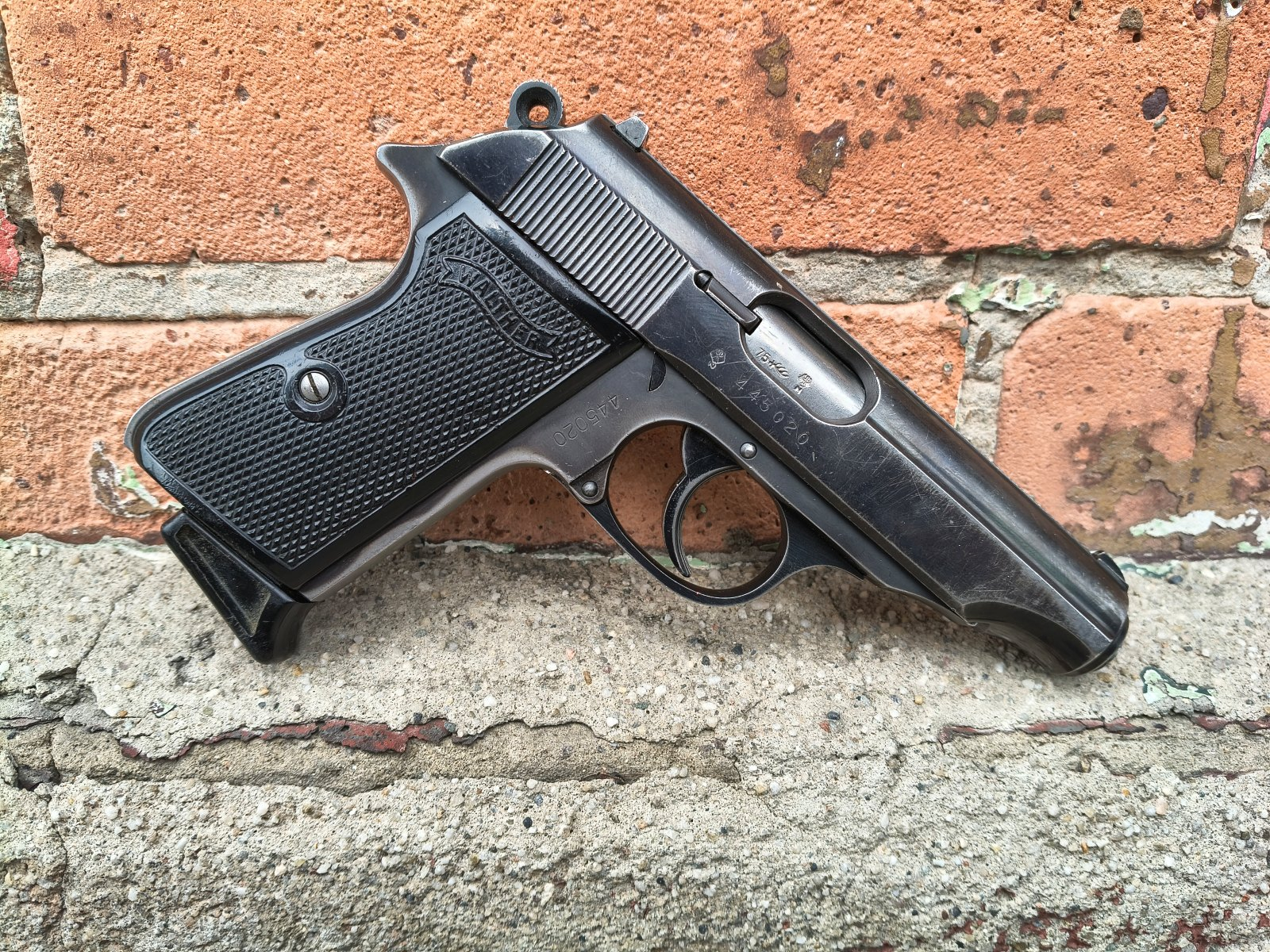 Walther PP zaczął podbijać niemiecki rynek już od 1929 roku. Rozwinięcie nazwy to Polizeipistole, w zamierzeniu przeznaczony dla funkcjonariuszy policji. Kultowy pistolet który na stałe zapisał się w historii broni palnej. Prezentowany egzemplarz pochodzi z roku 1975 i jest w stanie bdb. Lufa bdb. Oksyda oryginalna, z jednej strony trochę porysowana. Okładziny oryginalne, niepopękane. Magzynek oryginalny. Po prostu podręcznikowy powojenny PP!